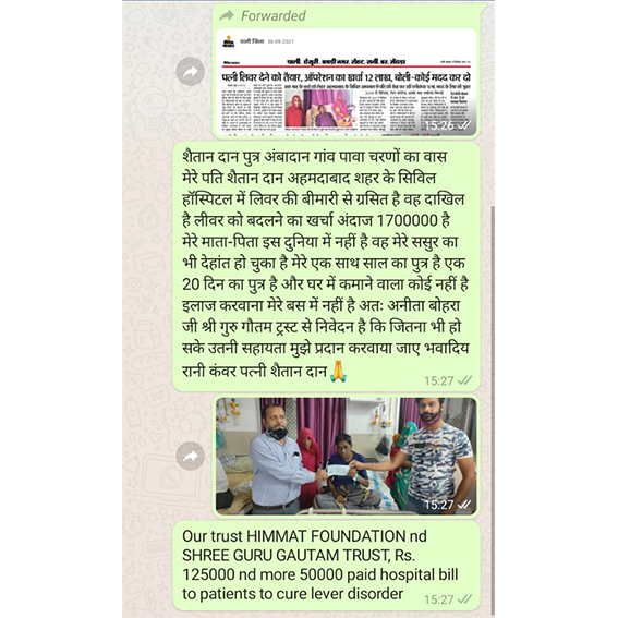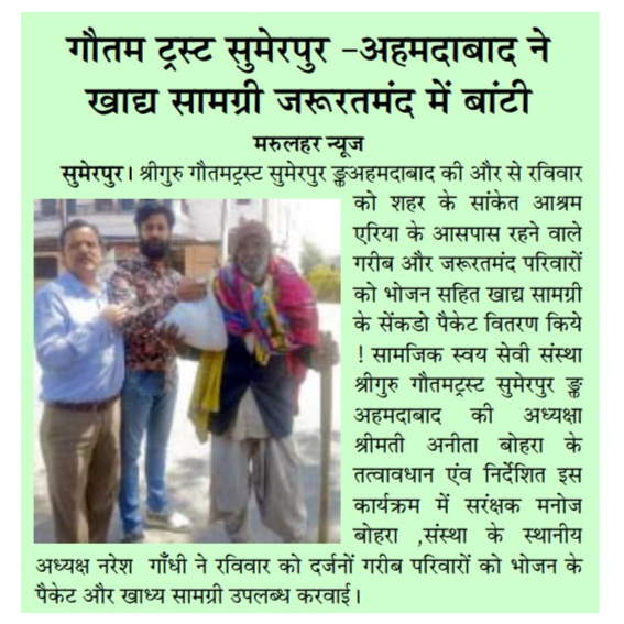 Shree Guru Gautam charitable and religious trust, A trust was formed under the instruction Mr. Manoj Bohra, father of our director Mr. Akshay Bohra to give free medical help to poor and needy patients, giving medicinal, food and shelter help.